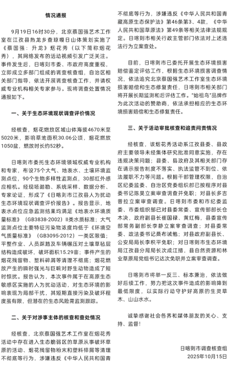 官方通報(bào)“蔡國強(qiáng)煙花秀”事件調(diào)查核查情況(G)