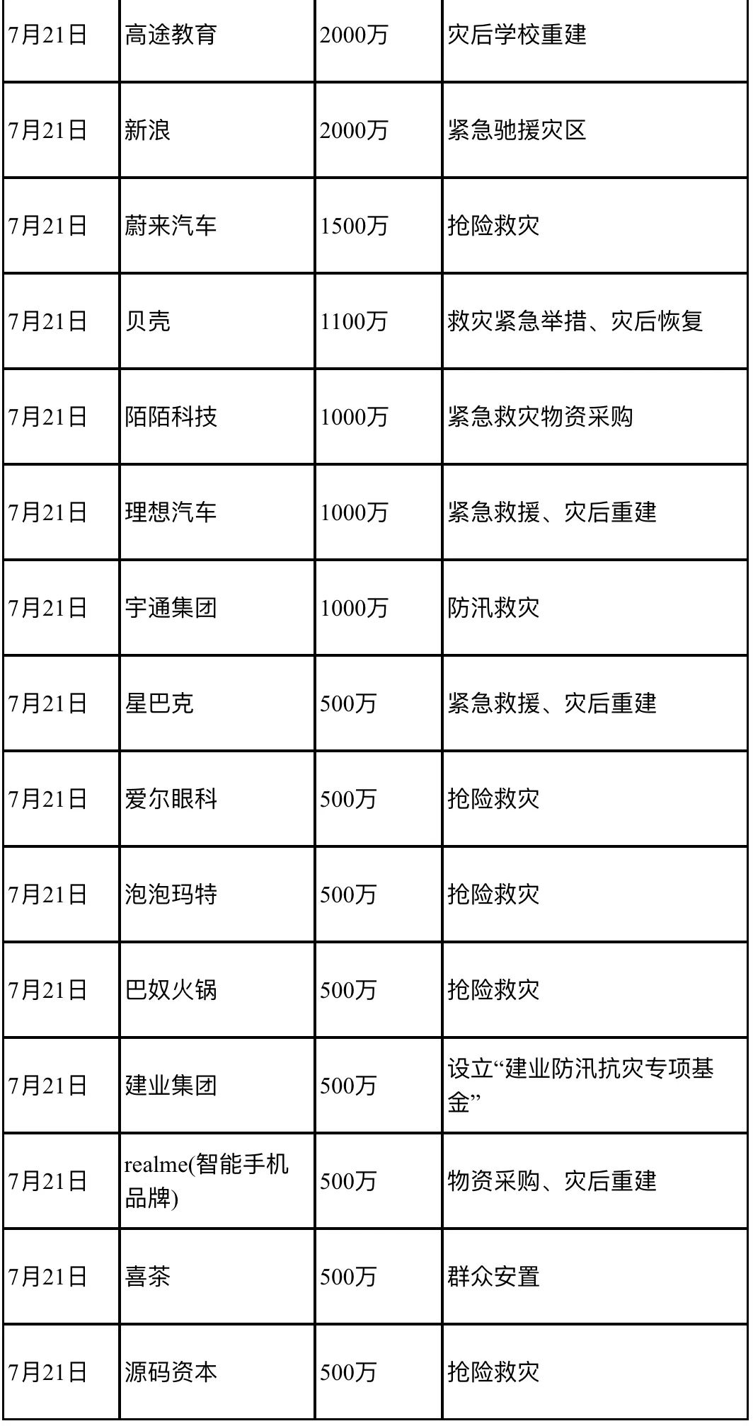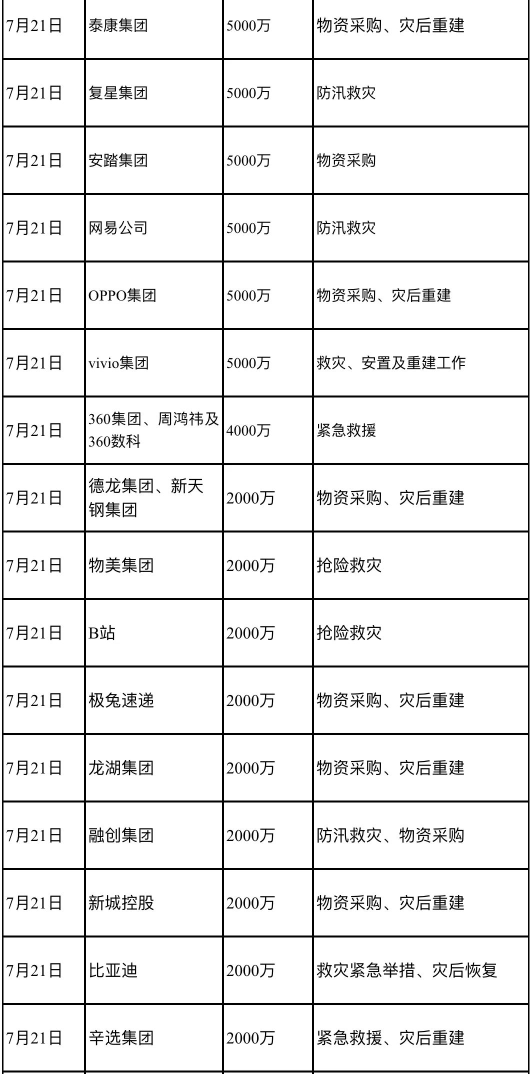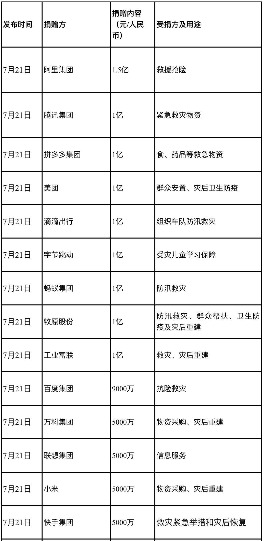 2021年夏,河南遭遇特大暴雨災(zāi)害,舉國上下萬眾一心,愛心捐贈源源不斷涌入。據(jù)《公益時報》不完全統(tǒng)計,截至2021年7月21日22時,一天內(nèi)有45家企業(yè)為河南水災(zāi)大額捐款近20億元人民幣,彰顯著大愛之心: