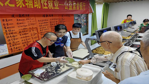 周六早上7點(diǎn),江蘇省南京市玄武區(qū)大石橋1號(hào)“建行助老助殘公益餐廳”里熱氣氤氳,一派繁忙。蘇建和同事們正耐心的和“孩子”們一起工作。從2013年起,她們每到休息日就變身這群大齡心智障礙孩子的“建行媽媽”,11年來(lái)從未中斷。