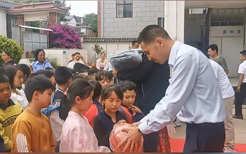 課間,孩子們朝操場飛奔而去,列隊完畢,大家把禮物送到每一個同學(xué)手上,并幫他們背上新書包,孩子們則還以隊禮……有的孩子迫不及待地打開書包,翻看里面的文具;有的則抱著籃球和羽毛球拍,臉上洋溢著幸福的笑容。而那些書籍,更是被孩子們視為寶貝,他們小心翼翼地捧在手中,仿佛每一本都藏著通往遠(yuǎn)方的秘密。