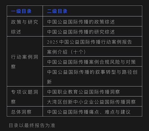 為此,“中國公益國際傳播共建網(wǎng)絡(luò)”項目立項《2025中國公益國際傳播發(fā)展報告》課題,依托實踐案例開展深度研究。