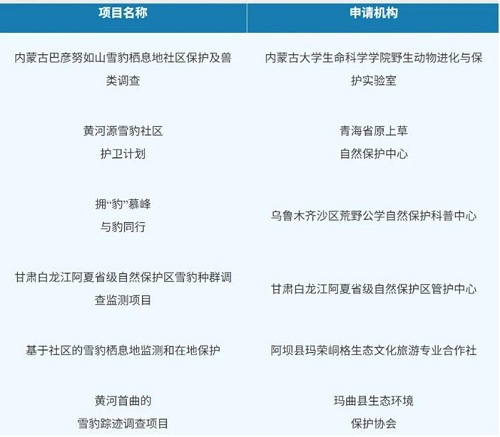 公示丨雪豹保護(hù)小額贈(zèng)款二期入選名單