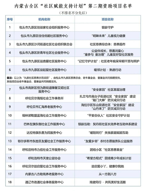 第二期內(nèi)蒙古全區(qū)“社區(qū)賦能支持計劃”資助項目名單公布 九原社區(qū)慈善示范項目簽約啟動