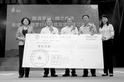 茅臺集團董事長袁仁國表示,目前距離實現(xiàn)脫貧目標(biāo)僅有三年時間,為貫徹落實黨中央、國務(wù)院的重大部署,積極參與扶貧攻堅戰(zhàn),大力實施精準扶貧,推動實現(xiàn)同步小康,茅臺集團與中國青基會制定了“國酒茅臺·國之棟梁”希望工程圓夢行動脫貧攻堅三年公益計劃。未來三年,茅臺集團將每年捐贈1億元,3年共,開展“國酒茅臺·國之棟梁——希望工程圓夢行動”脫貧攻堅三年公益計劃。