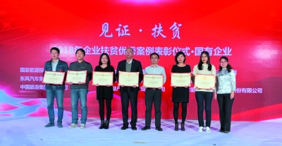 2018年12月5日,《企業(yè)精準(zhǔn)扶貧案例研究》暨《企業(yè)扶貧藍皮書(2018)》發(fā)布會在北京舉行。東風(fēng)公司扶貧案例入選《企業(yè)扶貧藍皮書》,獲評“企業(yè)扶貧優(yōu)秀案例獎”。東風(fēng)公司援藏工作隊領(lǐng)隊、西藏昌都市委副秘書長韓永民榮獲“企業(yè)扶貧優(yōu)秀人物”獎。