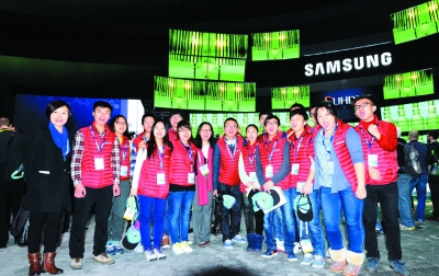 在CES展會現(xiàn)場,世界各地的科技廠商都在爭相展示他們的前沿科技成果和產(chǎn)品。學(xué)生們一來到展區(qū)就被這里的創(chuàng)新氛圍震撼,在大賽獨(dú)家贊助商——三星電子展區(qū),工作人員向成員們介紹了在CES上神秘亮相的SUHD智能電視,以及應(yīng)用在該智能電視上的量子點(diǎn)、倒三角邊框曲面設(shè)計(jì)等領(lǐng)先技術(shù)。在這樣的科技盛筵中,學(xué)生們感受著智能電視從外觀、感官、乃至生活方式上帶來的完美體驗(yàn)。