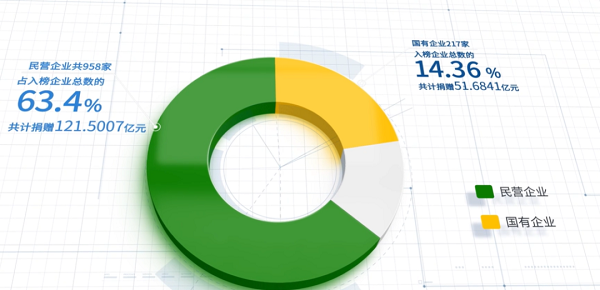 上榜企業(yè)中,民營(yíng)企業(yè)共958家,占上榜企業(yè)總數(shù)的63.40%;共計(jì)捐贈(zèng)121.5007億元,超過(guò)企業(yè)總捐贈(zèng)額的一半。