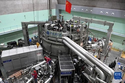 在中科院合肥物質(zhì)科學(xué)研究院,工作人員對有“人造太陽”之稱的全超導(dǎo)托卡馬克核聚變實驗裝置(EAST)進(jìn)行升級改造(2021年4月13日攝)。新華社記者 劉軍喜 攝
