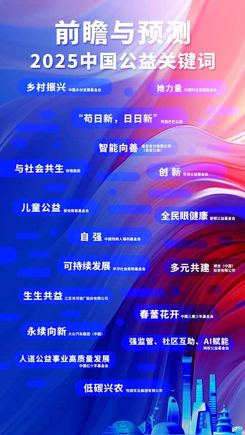 2025年是“十四五”規(guī)劃收官之年,標(biāo)志著中國(guó)公益事業(yè)邁入新里程。在第九屆中國(guó)公益年會(huì)上,《公益時(shí)報(bào)》聯(lián)合公益?zhèn)鞑ダ硎聲?huì)成員單位,以行業(yè)前瞻視角提煉年度議題,并發(fā)布17個(gè)“2025中國(guó)公益關(guān)鍵詞”。