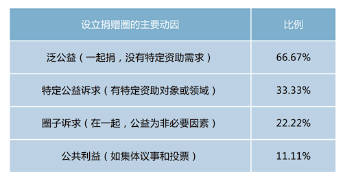 捐贈(zèng)圈發(fā)起人設(shè)立捐贈(zèng)圈的主要?jiǎng)右?。源自《運(yùn)用捐贈(zèng)圈激發(fā)公眾慈善參與的中國(guó)模式研究》