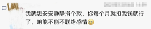 “每月10日扣款短信準(zhǔn)點送達(dá),一周接到3個以上提額電話,還有‘多捐就能多救孩子’的道德勸說。好心幫扶,現(xiàn)在卻成為負(fù)擔(dān)。”微信留言中,一位網(wǎng)友的吐槽引發(fā)廣泛共鳴。