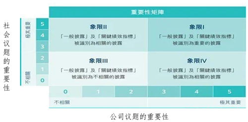 據(jù)介紹,“重要性分析”這一概念由國際咨詢和標(biāo)準(zhǔn)制定機(jī)構(gòu)AccountAbility于2003年最早提出,強(qiáng)調(diào)重要性的事項(xiàng)分析和信息披露,不是僅僅用于企業(yè)和股東,而是用來面向主要利益相關(guān)者。2004年聯(lián)合國全球契約組織推出ESG概念后,英國石油公司(BP)、美國福特公司(Ford)和英國電信公司(BT)等很快把重要性分析矩陣引入了公司的可持續(xù)發(fā)展報(bào)告或ESG報(bào)告之中。