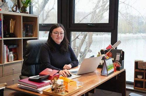 從宋妍位于后海的辦公室望出去,后海水面靜謐無波,但其下卻蘊含著整個春天的涌動與生機。窗內(nèi),著紅色休閑衣的宋妍,長發(fā)自然垂落,正端坐于電腦前,專注地處理著事務(wù)。窗臺上,兩盆紅色花卉迎雪盛放,以最熱烈的姿態(tài),訴說著生命本真的堅韌。