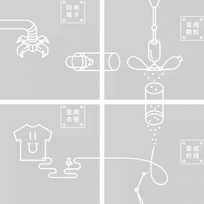 回收的廢棄塑料瓶,在進入服裝生產(chǎn)環(huán)節(jié)之前,已經(jīng)經(jīng)過了切片、分揀、清洗、高溫、消毒等標準工序,然后才變成了再生顆粒、再生纖維、紗線,紡成布,最后做成了衣服。