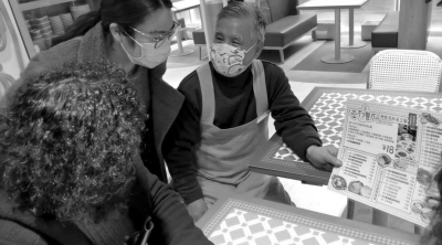張鶯又問了一遍:“你還記得一會兒的流程嗎?”“倒水,擺餐具,點菜。”俞瑞霞答。餐廳菜單正在優(yōu)化,“這兩天點菜都要通過二維碼。”一旁的志愿者提醒。