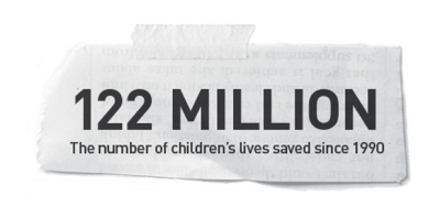 比爾:如果把每年比上一年多存活的兒童人數(shù)加起來,在過去25年中共有1.22億名五歲以下兒童的生命得到挽救。如果兒童死亡率一直保持在1990年的水平,這些孩子是無法活到今天的。