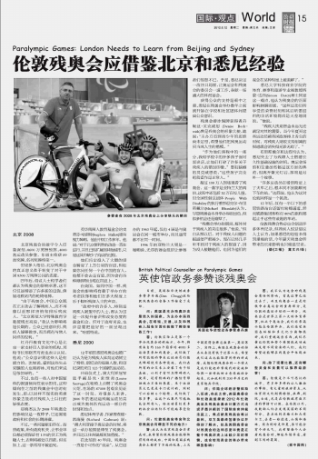 倫敦殘奧會應借鑒北京和悉尼經驗
