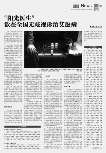 “陽光醫(yī)生”欲在全國無歧視診治艾滋病