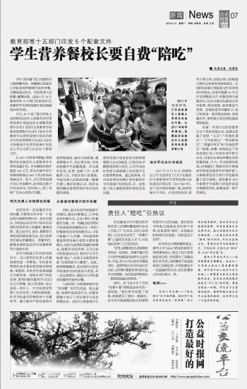學(xué)生營養(yǎng)餐校長要自費(fèi)“陪吃”