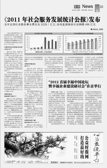 《2011年社會(huì)服務(wù)發(fā)展統(tǒng)計(jì)公報(bào)》發(fā)布