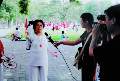 在迎奧運(yùn)的活動(dòng)中,劉淑敏老人參加了英語(yǔ)學(xué)習(xí)班,編排并出演了英語(yǔ)情景劇,在北京電視臺(tái)錄像播出,有電視臺(tái)專門來(lái)采訪她