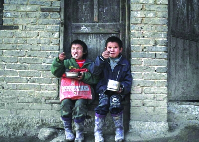 泥樹小學(xué)是一所民辦小學(xué),也是村里唯一的學(xué)校。由于條件惡劣,沒有人愿意來此工作,高中畢業(yè)的陶進(jìn)軍是村里唯一的老師。教育資源嚴(yán)重短缺的泥樹小學(xué)只有一個六年級和三年級。圖中是課余時孩子站在教室外。 |