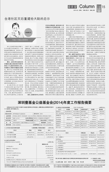 深圳壹基金公益基金會(huì)(2014)年度工作報(bào)告摘要