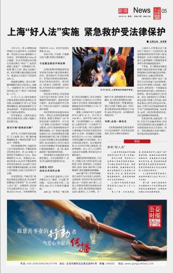 上?!昂萌朔ā睂?shí)施 緊急救護(hù)受法律保護(hù)