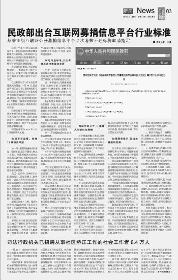 民政部出臺互聯(lián)網(wǎng)募捐信息平臺行業(yè)標(biāo)準(zhǔn)