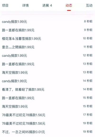 ■ 本報(bào)記者 菅宇正 首日觀察: 有基金會(huì)自行配捐, 騰訊配捐比例走低 99公益日第一天,騰訊總計(jì)9999萬(wàn)元的配捐資金在臨近中午時(shí)全部用完,累積幫助項(xiàng)目6000個(gè),而晚間9:09分驚喜時(shí)刻中的666.66萬(wàn)元也在數(shù)分鐘之內(nèi)被87個(gè)項(xiàng)目瓜分。截至9月7日晚間10:38分,騰訊公益平臺(tái)顯示,首日捐贈(zèng)人次超過(guò)538萬(wàn),捐贈(zèng)金額超過(guò)3.15億元。 首日,中華少年兒童慈善救助基金會(huì)累計(jì)籌款金額超5692萬(wàn)元,捐贈(zèng)人次達(dá)到75萬(wàn),其中“9958愛(ài)心病房”項(xiàng)目籌款總額超812萬(wàn)元(包含驚喜時(shí)刻配捐金額),獲得騰訊配捐123萬(wàn)元,企業(yè)配捐資金16.9萬(wàn)元,成為首日基金會(huì)籌款和單項(xiàng)籌款的雙料“冠軍”;阿拉善SEE基金會(huì)共有6個(gè)項(xiàng)目入圍籌款前99名,其中“留住長(zhǎng)江的微笑”項(xiàng)目共籌集資金超過(guò)204萬(wàn)元(包含驚喜時(shí)刻配捐金額),騰訊配捐超15.8萬(wàn)元,而6個(gè)入圍項(xiàng)目累計(jì)獲得企業(yè)配捐超過(guò)375萬(wàn)元,為首日攬獲企業(yè)配捐資金最高的基金會(huì)。 本報(bào)記者發(fā)現(xiàn),上海真愛(ài)夢(mèng)想公益基金會(huì)的“兒童素養(yǎng)教育計(jì)劃”項(xiàng)目首日獲得企業(yè)配捐超113萬(wàn)元,而該“企業(yè)”方即為上海真愛(ài)夢(mèng)想公益基金會(huì)本身,此外,還有包括中國(guó)扶貧基金會(huì)、中國(guó)兒童少年基金會(huì)、深圳慈善會(huì)、陜西省慈善協(xié)會(huì)等為機(jī)構(gòu)自有項(xiàng)目進(jìn)行配捐。 《公益時(shí)報(bào)》對(duì)首日籌款前99名的項(xiàng)目籌款金額進(jìn)行計(jì)算,以期得到每個(gè)項(xiàng)目公眾籌款與騰訊配捐的比例關(guān)系,即各項(xiàng)目需要多少元的公眾捐贈(zèng),才能獲得1元騰訊配捐。通過(guò)比對(duì)發(fā)現(xiàn),中國(guó)兒童少年基金會(huì)下設(shè)的“送春蕾女生成長(zhǎng)禮”項(xiàng)目是首日最難獲騰訊配捐的“苦主”,該項(xiàng)目共籌集資金64.79萬(wàn)元,騰訊配捐資金為1.1萬(wàn)元,意味著該項(xiàng)目每接收62.65元公眾善款,才能獲得騰訊公益慈善基金會(huì)1元的配比資金。 此外,記者發(fā)現(xiàn)個(gè)別項(xiàng)目存在配捐總額與籌款總額不符的現(xiàn)象。 中國(guó)兒童少年基金會(huì)“鋼絲善行愛(ài)心大粵行”項(xiàng)目首日累計(jì)籌集資金120.8萬(wàn)元,但據(jù)騰訊公益平臺(tái)項(xiàng)目頁(yè)面顯示,該項(xiàng)目獲得中國(guó)兒童少年基金會(huì)配捐資金113.3萬(wàn)元,獲得騰訊基金會(huì)配捐資金超11.8萬(wàn),兩者相加已超過(guò)該項(xiàng)目顯示的首日籌款總額。而阿拉善SEE基金會(huì)下設(shè)的項(xiàng)目也存在類(lèi)似情況。 次、末日觀察: “詭異”的捐贈(zèng)記錄 99公益日第二天臨近尾聲時(shí),據(jù)《公益時(shí)報(bào)》記者統(tǒng)計(jì),前兩日共有942萬(wàn)人次捐贈(zèng)5.59億元善款,而第二日1億元的騰訊配捐資金也在半小時(shí)內(nèi)即宣告“清空”,共幫助6207個(gè)項(xiàng)目。與首日538萬(wàn)捐贈(zèng)人次、3.15億元捐贈(zèng)資金的數(shù)據(jù)相比,第二日增速有所放緩。 值得關(guān)注的是,在許多項(xiàng)目的捐贈(zèng)明細(xì)中,出現(xiàn)了令記者感到費(fèi)解的捐贈(zèng)行為。 上海真愛(ài)夢(mèng)想公益基金會(huì)“兒童素養(yǎng)教育計(jì)劃”在第二日共有50727人次參與捐贈(zèng),項(xiàng)目累計(jì)籌集資金超441萬(wàn)元,獲騰訊公益慈善基金會(huì)配捐220.4萬(wàn)元,獲上海真愛(ài)夢(mèng)想公益基金會(huì)自行配捐116.3萬(wàn)元。但在該項(xiàng)目的捐贈(zèng)流水中,出現(xiàn)了相同ID間隔僅有1至2秒的重復(fù)捐贈(zèng)。 而中華兒慈會(huì)“為那一抹難忘的純凈”項(xiàng)目第二日共籌款267.9萬(wàn)元(包含驚喜時(shí)刻配捐資金),獲得騰訊配捐資金76.2萬(wàn)元,第二日籌款排名第9。記者截取該項(xiàng)目最新捐贈(zèng)明細(xì),也發(fā)現(xiàn)一個(gè)有相同名稱的ID在同一時(shí)間段內(nèi)反復(fù)進(jìn)行捐贈(zèng),且絕大多數(shù)捐贈(zèng)金額只有幾分錢(qián)。 同樣的情況還出現(xiàn)在中國(guó)社會(huì)福利基金會(huì)“授漁計(jì)劃一幫一助學(xué)”項(xiàng)目等眾多第二日籌款額排名靠前的項(xiàng)目中。 而另有很多項(xiàng)目并未顯示其捐贈(zèng)明細(xì),在有顯示的項(xiàng)目中,許多項(xiàng)目的捐贈(zèng)明細(xì)中并未發(fā)現(xiàn)此類(lèi)問(wèn)題。 鑒于有不少人懷疑此現(xiàn)象是盡可能多地獲取配捐的“刷單”行為,記者在9月9日凌晨3點(diǎn),即第三日配捐尚未開(kāi)始時(shí)再次進(jìn)行觀察,發(fā)現(xiàn)深圳市愛(ài)佑未來(lái)慈善基金會(huì)“白血病我不怕你”項(xiàng)目在此時(shí)仍舊保持著非常高的捐贈(zèng)人氣,其捐贈(zèng)流水中仍舊不間斷出現(xiàn)眾多ID相同的捐贈(zèng),金額大多以1.99元、0.01元、0.49元的低額度為主。而記者在該項(xiàng)目的捐贈(zèng)欄中,并未發(fā)現(xiàn)符合這些低額金額的默認(rèn)捐贈(zèng)選項(xiàng),更無(wú)法在捐贈(zèng)頁(yè)面直接輸入小數(shù)點(diǎn)。 而在記者觀察的短短8分鐘內(nèi),該項(xiàng)目的捐贈(zèng)數(shù)據(jù)就從41297人次、64731.76