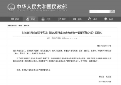 1月17日,民政部網(wǎng)站公布了由財(cái)政部、民政部共同印發(fā)的《脫鉤后行業(yè)協(xié)會(huì)商會(huì)資產(chǎn)管理暫行辦法》(以下簡(jiǎn)稱(chēng)《暫行辦法》)。 《暫行辦法》規(guī)定,協(xié)會(huì)商會(huì)對(duì)其管理和使用的各類(lèi)資產(chǎn)承擔(dān)主體責(zé)任。協(xié)會(huì)商會(huì)應(yīng)當(dāng)建立內(nèi)部治理和外部監(jiān)管相結(jié)合的資產(chǎn)管理體制,完善法人治理結(jié)構(gòu),厲行節(jié)約,科學(xué)配置資產(chǎn),合理合規(guī)使用和處置資產(chǎn),主動(dòng)接受監(jiān)督。 《暫行辦法》自2018年1月1日起施行。 明確資產(chǎn)范圍與管理原則 2015年發(fā)布的《行業(yè)協(xié)會(huì)商會(huì)與行政機(jī)關(guān)脫鉤總體方案》提出的脫鉤任務(wù)和措施包括:一是機(jī)構(gòu)分離,規(guī)范綜合監(jiān)管關(guān)系;二是職能分離,規(guī)范行政委托和職責(zé)分工關(guān)系;三是資產(chǎn)財(cái)務(wù)分離,規(guī)范財(cái)產(chǎn)關(guān)系;四是人員管理分離,規(guī)范用人關(guān)系;五是黨建、外事等事項(xiàng)分離,規(guī)范管理關(guān)系。 其中資產(chǎn)財(cái)務(wù)分離方面,《方案》提出行業(yè)協(xié)會(huì)商會(huì)應(yīng)執(zhí)行民間非營(yíng)利組織會(huì)計(jì)制度,單獨(dú)建賬、獨(dú)立核算。沒(méi)有獨(dú)立賬號(hào)、與行政機(jī)關(guān)會(huì)計(jì)合賬、財(cái)務(wù)由行政機(jī)關(guān)代管或集中管理的行業(yè)協(xié)會(huì)商會(huì),要設(shè)立獨(dú)立賬號(hào),單獨(dú)核算,實(shí)行獨(dú)立財(cái)務(wù)管理。 正是為了規(guī)范和加強(qiáng)脫鉤后行業(yè)協(xié)會(huì)商會(huì)資產(chǎn)管理,維護(hù)各類(lèi)資產(chǎn)安全完整,促進(jìn)協(xié)會(huì)商會(huì)健康發(fā)展,財(cái)政部、民政部出臺(tái)了《暫行辦法》。 《暫行辦法》明確了協(xié)會(huì)商會(huì)資產(chǎn)是指協(xié)會(huì)商會(huì)占有使用的、能以貨幣計(jì)量的各種經(jīng)濟(jì)資源的總稱(chēng)。包括依據(jù)國(guó)家有關(guān)規(guī)定確認(rèn)的國(guó)有資產(chǎn)、暫按國(guó)有資產(chǎn)管理的資產(chǎn)和其他資產(chǎn),其表現(xiàn)形式為流動(dòng)資產(chǎn)、固定資產(chǎn)、對(duì)外投資和無(wú)形資產(chǎn)等。 協(xié)會(huì)商會(huì)資產(chǎn)管理,應(yīng)當(dāng)遵循以下原則:堅(jiān)持內(nèi)部治理與外部監(jiān)管相結(jié)合;堅(jiān)持全鏈條管理與重點(diǎn)環(huán)節(jié)管理相結(jié)合;堅(jiān)持資產(chǎn)監(jiān)管與其他綜合監(jiān)管相結(jié)合;堅(jiān)持資產(chǎn)信息主動(dòng)公開(kāi)與強(qiáng)制公開(kāi)相結(jié)合。 協(xié)會(huì)商會(huì)對(duì)其管理和使用的各類(lèi)資產(chǎn)承擔(dān)主體責(zé)任。協(xié)會(huì)商會(huì)應(yīng)當(dāng)建立內(nèi)部治理和外部監(jiān)管相結(jié)合的資產(chǎn)管理體制,完善法人治理結(jié)構(gòu),厲行節(jié)約,科學(xué)配置資產(chǎn),合理合規(guī)使用和處置資產(chǎn),主動(dòng)接受監(jiān)督。 協(xié)會(huì)商會(huì)資產(chǎn)受法律保護(hù),任何個(gè)人和團(tuán)體不得私分、挪用和違規(guī)處置。 財(cái)政部門(mén)負(fù)責(zé)牽頭制定資產(chǎn)管理制度并組織實(shí)施和監(jiān)督檢查,重點(diǎn)加強(qiáng)國(guó)有資產(chǎn)監(jiān)督管理,建立資產(chǎn)報(bào)告制度等;民政部門(mén)負(fù)責(zé)統(tǒng)一的信息平臺(tái)建設(shè),構(gòu)建協(xié)會(huì)商會(huì)資產(chǎn)信息披露渠道,會(huì)同財(cái)政部門(mén)和其他相關(guān)部門(mén)共同做好協(xié)會(huì)商會(huì)資產(chǎn)監(jiān)管工作。 應(yīng)建立黨組織參與 重要事項(xiàng)決策 《暫行辦法》指出,協(xié)會(huì)商會(huì)資產(chǎn)管理的主要內(nèi)容是:完善資產(chǎn)管理體制,明晰管理職責(zé);建立健全內(nèi)部資產(chǎn)管理制度體系;規(guī)范資產(chǎn)管理流程。 制度方面,協(xié)會(huì)商會(huì)應(yīng)當(dāng)根據(jù)國(guó)家有關(guān)法律法規(guī)和資產(chǎn)管理制度,在章程中明確經(jīng)費(fèi)來(lái)源、資產(chǎn)管理和使用原則、對(duì)外投資等重要事項(xiàng)的工作程序,以及終止時(shí)剩余資產(chǎn)的處置規(guī)定等。 協(xié)會(huì)商會(huì)應(yīng)當(dāng)按照節(jié)約高效、科學(xué)規(guī)范的原則,制定涵蓋資產(chǎn)配置、使用、處置、資產(chǎn)收入、對(duì)外投資、資產(chǎn)清查、資產(chǎn)報(bào)告、資產(chǎn)評(píng)估等全過(guò)程,以及資產(chǎn)配置標(biāo)準(zhǔn)和內(nèi)部管理程序的資產(chǎn)管理辦法。 協(xié)會(huì)商會(huì)資產(chǎn)管理辦法需經(jīng)會(huì)員大會(huì)或會(huì)員代表大會(huì)審議通過(guò)。 機(jī)制方面,協(xié)會(huì)商會(huì)應(yīng)當(dāng)建立黨組織參與資產(chǎn)配置、對(duì)外投資、資產(chǎn)處置、資產(chǎn)收益分配等重要管理事項(xiàng)的決策機(jī)制。 協(xié)會(huì)商會(huì)各項(xiàng)資產(chǎn)收入和支出全部納入單位財(cái)務(wù)預(yù)算,實(shí)行統(tǒng)一核算和統(tǒng)一管理。 協(xié)會(huì)商會(huì)配置資產(chǎn)應(yīng)當(dāng)符合規(guī)定的配置標(biāo)準(zhǔn);沒(méi)有配置標(biāo)準(zhǔn)的,應(yīng)當(dāng)從嚴(yán)控制,合理