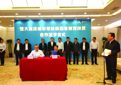 今年5月9日,恒大集團(tuán)結(jié)對幫扶陜西教育扶貧合作簽字儀式在陜西省政府舉行。恒大集團(tuán)表示,將無償捐贈(zèng)10億元,用于支持陜西省30多個(gè)貧困縣、區(qū)的中小學(xué)、幼兒園建設(shè)。項(xiàng)目計(jì)劃在三年內(nèi)分期分批組織實(shí)施。