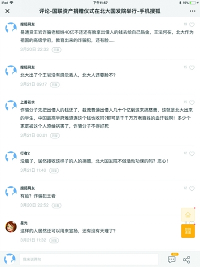 ■ 本報記者 張龍蛟 3月20日,國聯(lián)資產(chǎn)捐贈儀式在北京大學(xué)國家發(fā)展研究院舉行。此次捐贈儀式的主要內(nèi)容是表彰北大國發(fā)院金融碩士校友、EMBA2011級校友、國聯(lián)資產(chǎn)總裁王巖代表國聯(lián)資產(chǎn)向北大捐贈2000萬元人民幣。 綜合教育領(lǐng)域多年的捐贈統(tǒng)計數(shù)據(jù)來看,2000萬元的捐贈額并不十分突出,但上述捐贈報道經(jīng)其他媒體發(fā)出后沒多久卻引來不少網(wǎng)友評論,且全部是“負(fù)評”。 此次捐贈中網(wǎng)友們控訴的易通貸是什么,易通貸事件的背后反映了什么問題,此類資金為何會牽涉公益,接受捐贈時應(yīng)如何避免卷入此類事件?這一系列問題的源頭都要從近年來頻繁“爆雷”的P2P網(wǎng)貸說起。 什么是“P2P爆雷”? 所謂“P2P網(wǎng)貸”,指的是個人對個人的網(wǎng)絡(luò)借貸,其典型模式為:網(wǎng)絡(luò)信貸公司提供平臺,由借貸雙方自由競價,撮合成交。資金借出人獲取利息收益,并承擔(dān)風(fēng)險;資金借入人到期償還本金,網(wǎng)絡(luò)信貸公司收取中介服務(wù)費(fèi)。 而從2018年以來,P2P平臺相繼出事,“爆雷”一詞頻繁出現(xiàn)在互聯(lián)網(wǎng)上,意指P2P平臺因為逾期兌付或經(jīng)營不善問題,未能償付投資人本金利息,而出現(xiàn)的平臺停業(yè)、清盤、法人跑路、平臺失聯(lián)、倒閉等問題。 據(jù)“新華網(wǎng)思客”2018年7月13日報道,僅半個月內(nèi),就有超過40家P2P平臺相繼“爆雷”,涉及資金超過1200億元。進(jìn)入2019年,P2P平臺“爆雷”事件仍時有發(fā)生。譬如,據(jù)有關(guān)媒體報道,3月28日就爆出P2P頭部平臺團(tuán)貸網(wǎng)實(shí)控人唐軍、張林投案自首,警方以涉嫌非法吸收公眾存款立案偵查。 P2P作為2006年才傳入國內(nèi),2011年方迎來快速發(fā)展期的金融創(chuàng)新模式代表,近年來為何“爆雷”不止呢?綜合梳理多方分析發(fā)現(xiàn),P2P平臺“爆雷”的原因有很多,其中就包括純詐騙平臺跑路、因擠兌或壞賬倒閉、因自身合規(guī)性經(jīng)不住檢查或平臺方經(jīng)營不善而出問題等多方面的原因。 P2P公司熱衷公益慈善 梳理P2P平臺的業(yè)務(wù),不難發(fā)現(xiàn),不少P2P相關(guān)公司與其責(zé)任人都熱衷于公益慈善事業(yè)。除此次備受質(zhì)疑的P2P易通貸法定代表人、國聯(lián)資產(chǎn)總裁王巖代表國聯(lián)資產(chǎn)向北大捐贈2000萬元一事之外,另據(jù)《中國基金報》報道,2016年2月成立團(tuán)貸網(wǎng)的唐軍,早在2016年10月愛佑慈善基金會舉辦的年度慈善晚宴上,就捐出5200萬元善款支持愛佑慈善基金會。 此外,擁有P2P業(yè)務(wù)“宜人貸”的宜信在2009年就推出助農(nóng)公益理財平臺“宜農(nóng)貸”,通過宜農(nóng)貸,資金出借人可以將資金出借給貧困地區(qū)的農(nóng)村借款人,支持他們發(fā)展生產(chǎn)、改善生活。 2018年7月因項目逾期、實(shí)際控制人失聯(lián)而“爆雷”的P2P平臺禮德財富自2014年開始就攜手揭陽市大學(xué)生發(fā)展基金會發(fā)起公益眾籌助學(xué)項目,助力貧困大學(xué)生。 “爆雷”會否影響相關(guān)公益項目? P2P平臺“爆雷”事件的頻發(fā),也在一定程度上也給和P2P平臺相關(guān)的公益慈善項目或活動帶來了影響。王巖代表國聯(lián)資產(chǎn)向北大捐贈2000萬元而遭到P2P平臺易通貸相關(guān)網(wǎng)友負(fù)評一事僅是其中一例。 據(jù)了解,易通貸全稱是北京易通貸金融信息服務(wù)有限公司,是一家網(wǎng)絡(luò)借貸信息中介服務(wù)平臺,屬于君石控股集團(tuán)旗下公司,為出借人群和中小企業(yè)提供網(wǎng)絡(luò)借貸信息中介服務(wù)。 據(jù)天眼查顯示,北京易通貸金融信息服務(wù)有限公司和國聯(lián)資產(chǎn)管理有限公司的法定代表人和大股東都是王巖。 易通貸是目前國內(nèi)P2P網(wǎng)貸公司大軍中的一個縮影。據(jù)易通貸官網(wǎng)介紹,2011年成立的易通貸,在2013年正式上線交易,并在之后榮獲了包括“2014年度最佳P2P平臺“獎、2015年“互聯(lián)網(wǎng)金融安全領(lǐng)袖”獎、“2017企業(yè)社會責(zé)任(CSR)優(yōu)秀企業(yè)獎”等在內(nèi)的多個獎項,并于2017年5月舉辦了“愛心無限 通惠天下”易通貸關(guān)注孤獨(dú)癥兒童大型公益活動,于2017年10月舉辦關(guān)注流動兒童公益活動。值得注意的是,易通貸官網(wǎng)自稱接入了中國電子商務(wù)協(xié)會反欺詐系統(tǒng)。然而在2018年12月20日,民政部官網(wǎng)發(fā)出公告稱,對中國電子商務(wù)協(xié)會作出撤銷登記處罰,同時將中國電子商務(wù)協(xié)會列入社會組織嚴(yán)重違法失信名單。 回顧網(wǎng)友“負(fù)評”王巖代表國聯(lián)資產(chǎn)向北大捐贈一事的起因,可以發(fā)現(xiàn),2018年8月易通貸平臺出現(xiàn)提現(xiàn)困難,隨后,8月30日,易通貸發(fā)布《關(guān)于易通貸近期經(jīng)營情況的說明》承諾,公司將在12月26日恢復(fù)正常的提現(xiàn)工作。然而到截止日期后,平臺仍沒能如投資人所愿可以正常提現(xiàn)。因此,出現(xiàn)了2018年12月27日,易通貸總部遭遇投資人上門維權(quán)事件。2019年1月30日,因投資人報案,易通貸平臺已被公安經(jīng)偵部門介入調(diào)查。 據(jù)網(wǎng)貸之家報道,易通貸在中國互金協(xié)會信披系統(tǒng)上披露的數(shù)據(jù)顯示,截