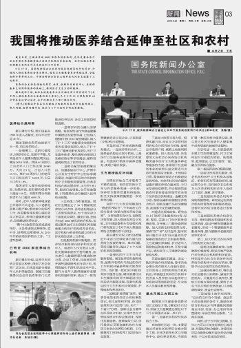 我國(guó)將推動(dòng)醫(yī)養(yǎng)結(jié)合延伸至社區(qū)和農(nóng)村