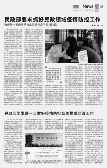 民政部要求抓好民政領(lǐng)域疫情防控工作