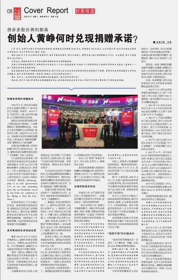創(chuàng)始人黃崢何時(shí)兌現(xiàn)捐贈(zèng)承諾?