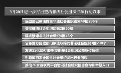 非法社會(huì)組織為了迷惑公眾,從名稱、組織架構(gòu)等各個(gè)方面都模仿合法登記的社會(huì)組織,如果不注意觀察,難以識(shí)別,公眾很可能被騙。 民政部等22個(gè)部門聯(lián)合發(fā)布《關(guān)于鏟除非法社會(huì)組織滋生土壤 凈化社會(huì)組織生態(tài)空間的通知》,全面加強(qiáng)對(duì)各類合法主體的管理,力求通過管住合法,達(dá)到制止非法的目的。 前不久,北京市民政局依法對(duì)非法社會(huì)組織“中國(guó)國(guó)學(xué)院大學(xué)”及下設(shè)“中國(guó)國(guó)學(xué)院大學(xué)國(guó)醫(yī)藥生命科學(xué)院”“中國(guó)國(guó)學(xué)院大學(xué)國(guó)醫(yī)藥生命科學(xué)院量子醫(yī)學(xué)研究院”等70家分支機(jī)構(gòu)予以取締。 在我國(guó)經(jīng)濟(jì)社會(huì)發(fā)展過程中,社會(huì)組織發(fā)揮著重要作用,社會(huì)組織發(fā)展日趨規(guī)范。但與此同時(shí),像“中國(guó)國(guó)學(xué)院大學(xué)”這樣的非法社會(huì)組織活動(dòng)仍時(shí)有發(fā)生,一些非法社會(huì)組織在利益驅(qū)動(dòng)下,不斷變換手法,以假亂真、招搖撞騙。 包裝“高大上”,活動(dòng)“蹭熱點(diǎn)”,非法社會(huì)組織用各種方式騙取信任。 “中國(guó)國(guó)學(xué)院大學(xué)”對(duì)外宣稱是有關(guān)部委批準(zhǔn)成立的傳統(tǒng)文化高端教育學(xué)府,以“弘揚(yáng)國(guó)學(xué)、傳承文化”為主要內(nèi)容,并被納入“聯(lián)合國(guó)全球和諧聯(lián)盟、世界和諧基金會(huì)”,向世界各國(guó)輸送“和諧大使、文化干部”,是“目前國(guó)內(nèi)外唯一具有授國(guó)學(xué)學(xué)士、碩士、博士學(xué)位的國(guó)際連鎖型文化教育實(shí)體學(xué)院”。 為了加深公眾印象、增加可信度,“中國(guó)國(guó)學(xué)院大學(xué)”甚至偽造了國(guó)家部委公文、登記證書,還私刻印章,發(fā)布帶有“中國(guó)國(guó)學(xué)院大學(xué)”字樣的所謂“紅頭文件”。但實(shí)際上,該組織的唯一目的就是斂財(cái),通過設(shè)立機(jī)構(gòu)、舉辦揭牌儀式、頒獎(jiǎng)活動(dòng)等各種方式收取費(fèi)用。直至案發(fā),“中國(guó)國(guó)學(xué)院大學(xué)”已經(jīng)在北京、天津、廣東、山東、湖南等地建立了多達(dá)70家的分支機(jī)構(gòu)。 北京市民政局執(zhí)法人員上門取締時(shí),“中國(guó)國(guó)學(xué)院大學(xué)”下設(shè)的兩個(gè)分支機(jī)構(gòu)辦公地點(diǎn)早已人去樓空,但門前依然懸掛著“中國(guó)國(guó)學(xué)院大學(xué)國(guó)醫(yī)藥生命科學(xué)院”“中國(guó)國(guó)學(xué)院大學(xué)國(guó)醫(yī)藥生命科學(xué)院量子醫(yī)學(xué)研究院”牌子。進(jìn)入門廳,墻上張貼著大幅宣傳海報(bào),介紹“量子科學(xué)”在醫(yī)學(xué)上的應(yīng)用,并宣稱“能快速、安全、溫和根治疾病、逆轉(zhuǎn)衰老”。 “很多非法社會(huì)組織往往冠以‘中國(guó)’‘中華’‘全國(guó)’‘世界’等名頭,令人難辨真假?!鄙虾K山瓍^(qū)讀者趙琴就曾見過非法社會(huì)組織的宣傳,他們有的選擇在黨政機(jī)關(guān)辦公地附近或附屬場(chǎng)所租用辦公場(chǎng)地,有的拉攏一些退休黨政干部或社會(huì)名人為其“站臺(tái)”,還有的運(yùn)用各種手段宣傳“貼金”,“甚至有些非法社會(huì)組織在名稱上與合法登記的社會(huì)組織僅一字之差,網(wǎng)頁宣傳上抄襲合法社會(huì)組織的官網(wǎng)內(nèi)容,更增加了迷惑性”。 除了讓人眼花繚亂的宣傳手法,非法社會(huì)組織的各種活動(dòng)都會(huì)“蹭熱點(diǎn)”,而且組織形式種類繁多?!八麄兩朴诖颉吝吳颉源宋矍??!北本┦谢ヂ?lián)網(wǎng)金融行業(yè)協(xié)會(huì)黨委書記許澤瑋遇到過打著“協(xié)會(huì)”旗號(hào)的詐騙組織,“這些非法社會(huì)組織或以‘協(xié)會(huì)’‘促進(jìn)會(huì)’‘聯(lián)合會(huì)’‘基金會(huì)’等傳統(tǒng)社會(huì)組織形式活動(dòng),或以‘委員會(huì)’‘發(fā)展局’‘中心’等類似政府機(jī)關(guān)和事業(yè)單位的組織形式活動(dòng),防不勝防”。 “有的非法社會(huì)組織千方百計(jì)掛靠到合法登記的社會(huì)組織名下,變身為分支機(jī)構(gòu);有的與合法社會(huì)組織共同開展活動(dòng);有的想方設(shè)法成為事業(yè)單位的下設(shè)機(jī)構(gòu),魚目混珠?!痹S澤瑋提醒道,“公眾應(yīng)該多留幾個(gè)心眼,尤其當(dāng)被索取一定金額的費(fèi)用時(shí),不要盲目輕信”。 對(duì)照合法登記名單識(shí)別非法社會(huì)組織,提高防范意識(shí),防止被騙。 非法社會(huì)組織為了迷惑公眾,從名稱、組織架構(gòu)等各個(gè)方面都模仿合法登記的社會(huì)組織,如果不注意觀察、識(shí)別,公眾很可能被騙。 今年3月,民政部等22個(gè)部門聯(lián)合發(fā)布《關(guān)于鏟除非法社會(huì)組織滋生土壤 凈化社會(huì)組織生態(tài)空間的通知》(以下簡(jiǎn)稱《通知》),根據(jù)近年來非法社會(huì)組織活動(dòng)的新特點(diǎn)和新動(dòng)向,從切斷非法社會(huì)組織的營(yíng)養(yǎng)來源入手,對(duì)非法社會(huì)組織開展活動(dòng)所需要的場(chǎng)所、空間、宣傳渠道、人員支持等各個(gè)環(huán)節(jié)進(jìn)行封堵,對(duì)非法社會(huì)組織活動(dòng)可能涉及的單