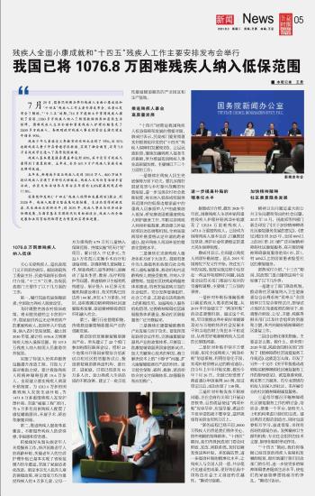 我國已將1076.8萬困難殘疾人納入低保范圍