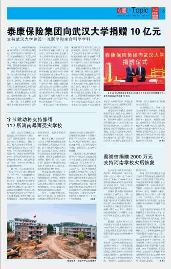 泰康保險(xiǎn)集團(tuán)向武漢大學(xué)捐贈(zèng)10億元