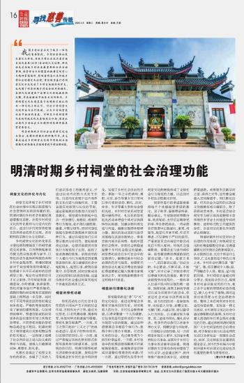 明清時(shí)期鄉(xiāng)村祠堂的社會(huì)治理功能