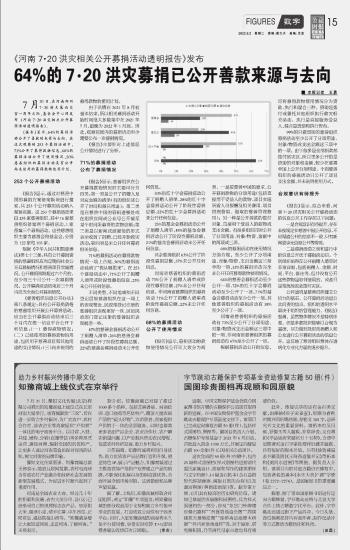 《河南7·20洪災(zāi)相關(guān)公開(kāi)募捐活動(dòng)透明報(bào)告》發(fā)布 64%的7·20洪災(zāi)募捐已公開(kāi)善款來(lái)源與去向