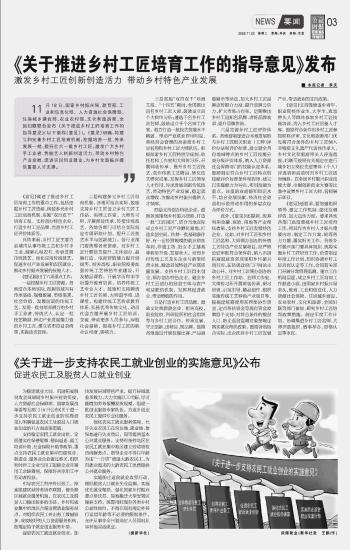 《關(guān)于推進鄉(xiāng)村工匠培育工作的指導(dǎo)意見》發(fā)布