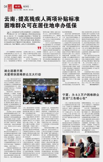 云南:提高殘疾人兩項補貼標(biāo)準(zhǔn) 困難群眾可在居住地申辦低保