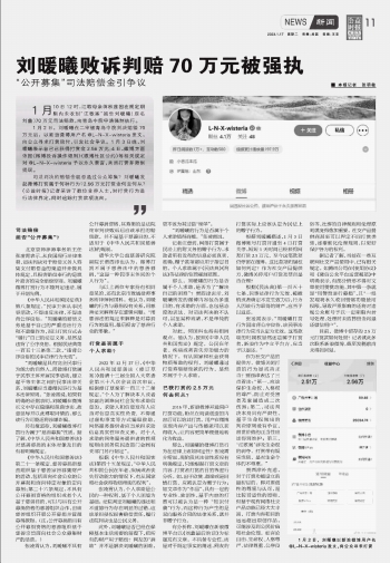 劉暖曦敗訴判賠70萬元被強(qiáng)執(zhí)