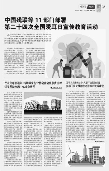 中國(guó)殘聯(lián)等11部門部署第二十四次全國(guó)愛(ài)耳日宣傳教育活動(dòng)