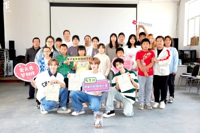 近日,愛佑安生項(xiàng)目“童年守護(hù)官”ENONE組合的三位成員張勝希、譚奕天、林展?fàn)q一起來到愛佑安生北京密云項(xiàng)目點(diǎn),用動聽的歌聲、青春的舞蹈和快樂的游戲,以及精心準(zhǔn)備的禮物,陪伴孩子們一起度過了充滿愛意的一天。他們希望通過自己的陪伴,讓孩子們感受到更多的愛和溫暖,也為孩子們送去更多向上的力量。 當(dāng)日,得知有明星要來看望自己,孩子們非常期待,圍著社工老師問了很多問題,眼神里滿滿都是激動和興奮。但當(dāng)真正見到ENONE組合時(shí),孩子們又都害羞了起來。 面對稍顯緊張的小朋友們,童年守護(hù)官通過破冰游戲熱情地向大家做了自我介紹,并且很快就坐到孩子們中,一一認(rèn)識和了解每個(gè)小朋友的興趣愛好,快速跟小朋友們熟絡(luò)起來。看到原以為遙遠(yuǎn)的明星親切地像大哥哥一樣,孩子們也慢慢放松下來。 ENONE組合帶領(lǐng)大家玩起了能量傳輸游戲,三名成員和孩子們每人都拿著一根球槽,將球連續(xù)傳動到隊(duì)友的球槽中,最快到達(dá)終點(diǎn)的一隊(duì)即為勝方。這是一個(gè)非??简?yàn)團(tuán)隊(duì)配合和默契的游戲,剛剛還有點(diǎn)放不開的孩子們,在成員們的帶領(lǐng)下全身心投入,傳球失誤時(shí)一起討論總結(jié)經(jīng)驗(yàn)教訓(xùn),傳球順利時(shí)互相加油打氣。一場比賽下來,孩子們也徹底放開了自己。 激烈的游戲比賽之后,三位童年守護(hù)官為孩子們帶來了一首原創(chuàng)歌曲,用溫暖的歌聲祝福孩子們在成長路上一直有友情相伴。 他們還現(xiàn)場教會孩子們一段手勢舞,三位自告奮勇的小朋友更是提出要跟哥哥們一起錄制舞蹈視頻,其他小伙伴也用熱烈的掌聲為他們加油。 當(dāng)孩子們還沉浸在歌聲的余韻中時(shí),三位童年守護(hù)官拿出精心準(zhǔn)備好的禮物,每一個(gè)嶄新的書包里都裝滿了文具、水杯和小禮物,以及他們親筆寫給每一個(gè)小朋友的專屬祝福。童年守護(hù)官希望這份特別的禮物,能陪伴孩子們很長一段時(shí)間,讓他們知道有人一直在關(guān)心和愛著他們。 小朋友們也為童年守護(hù)官送上了自己制作的手工畫,希望哥哥們看到這幅畫就能想起他們曾來過這里。 作為愛佑安生項(xiàng)目童年守護(hù)官,這是ENONE組合首次實(shí)地參與公益活動?!昂⒆觽兌挤浅M?、善良,雖然生活中可能面臨著一些挑戰(zhàn),但他們臉上的笑容依舊燦爛,能感受到他們都是懷著愛意面對身邊的每一個(gè)人。這次探訪對于我們而言,或許從孩子們身上學(xué)到的,要比我們送給孩子們的更多?!?/p> 未來,ENONE組合還將繼續(xù)攜手愛佑安生項(xiàng)目,為鄉(xiāng)村兒童送去更多向上的力量。(胡彬) |