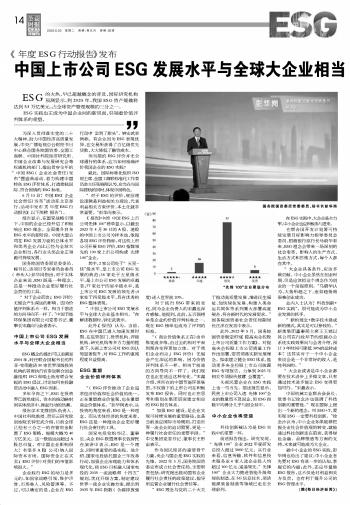中國上市公司ESG發(fā)展水平與全球大企業(yè)相當