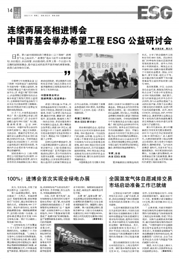 連續(xù)兩屆亮相進博會 中國青基會舉辦希望工程ESG公益研討會