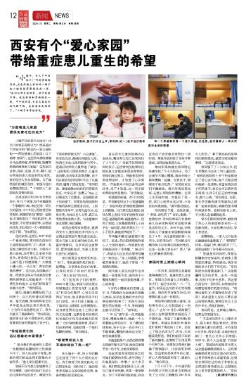 西安有個“愛心家園” 帶給重癥患兒重生的希望