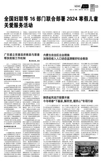 全國(guó)婦聯(lián)等16部門聯(lián)合部署2024寒假兒童關(guān)愛服務(wù)活動(dòng)